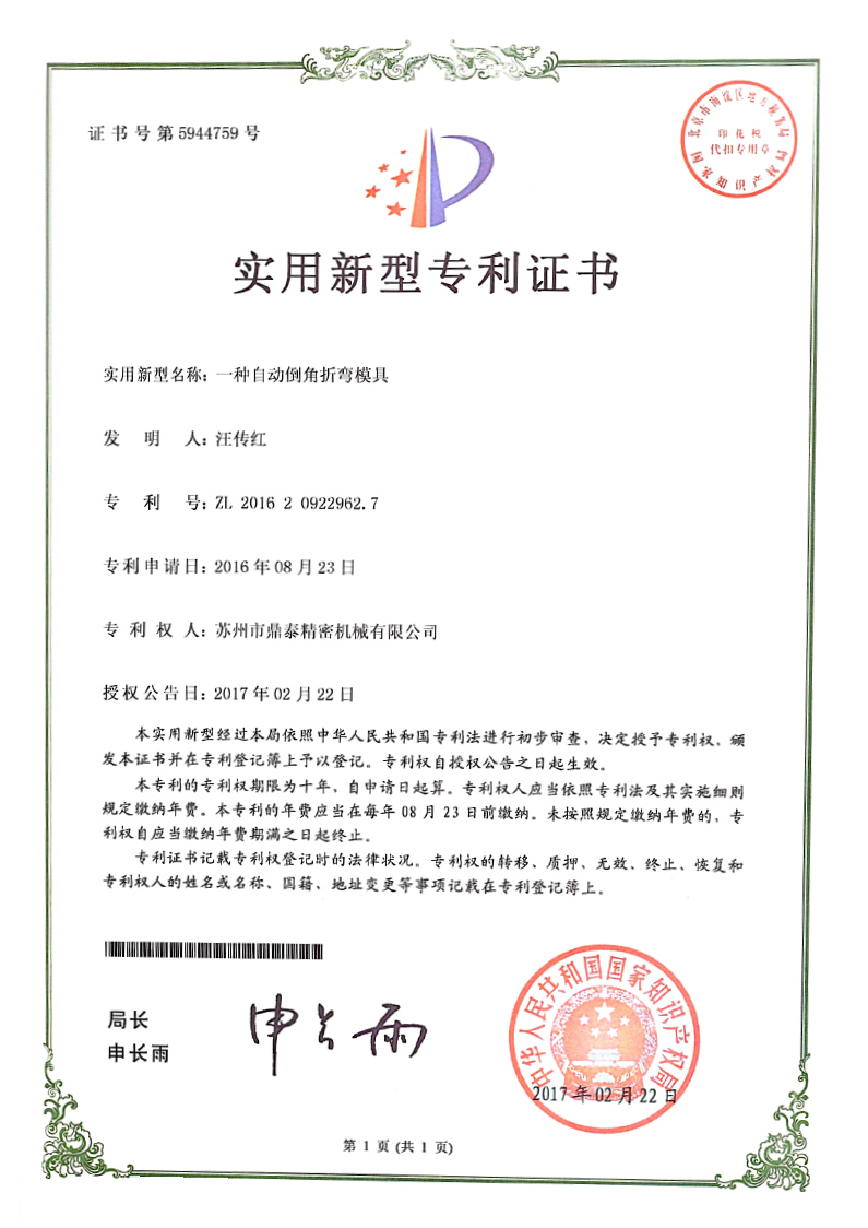 自动倒角折弯模具