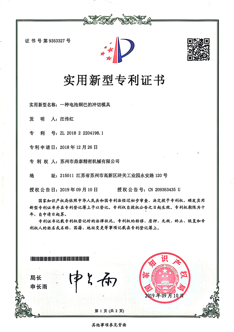 电池铜巴冲切模具